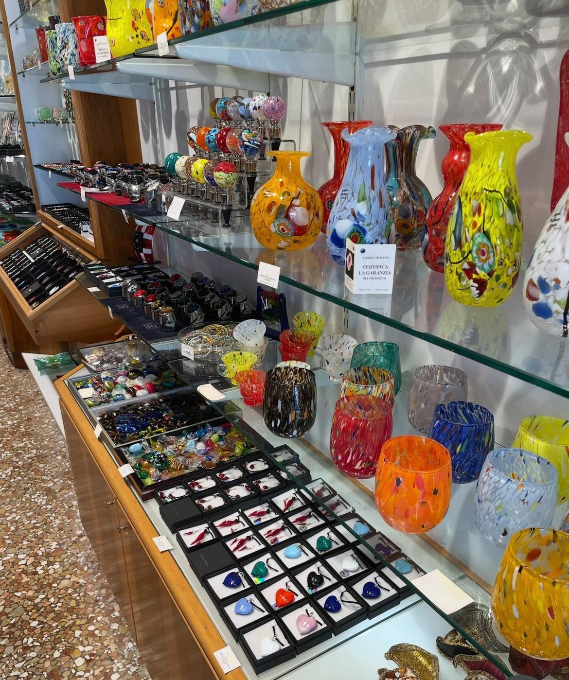 圧倒的な美しさ——店内に並ぶムラーノガラス